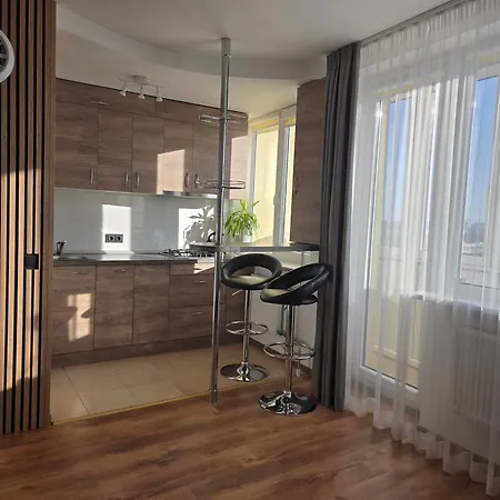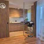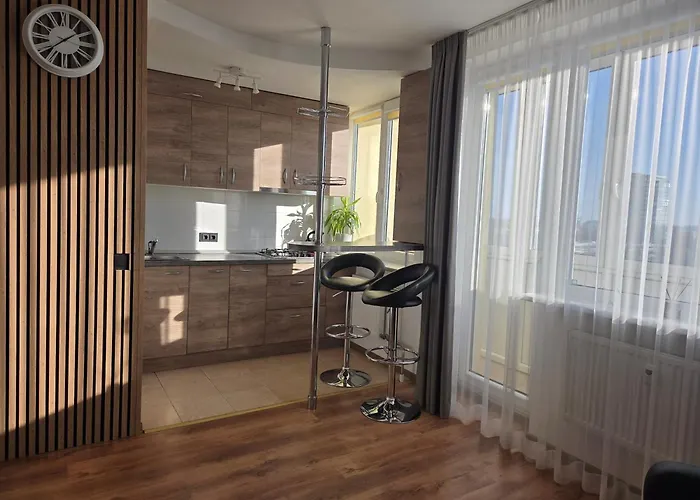 Panorama Studio In Klaipeda - Self Check In features views of the city and includes a balcony with a washing machine. Enhancing your comfort, a separate toilet and a shower can be found at the accommodation. Furthermore, a hair dryer, towels, and slippers is available.